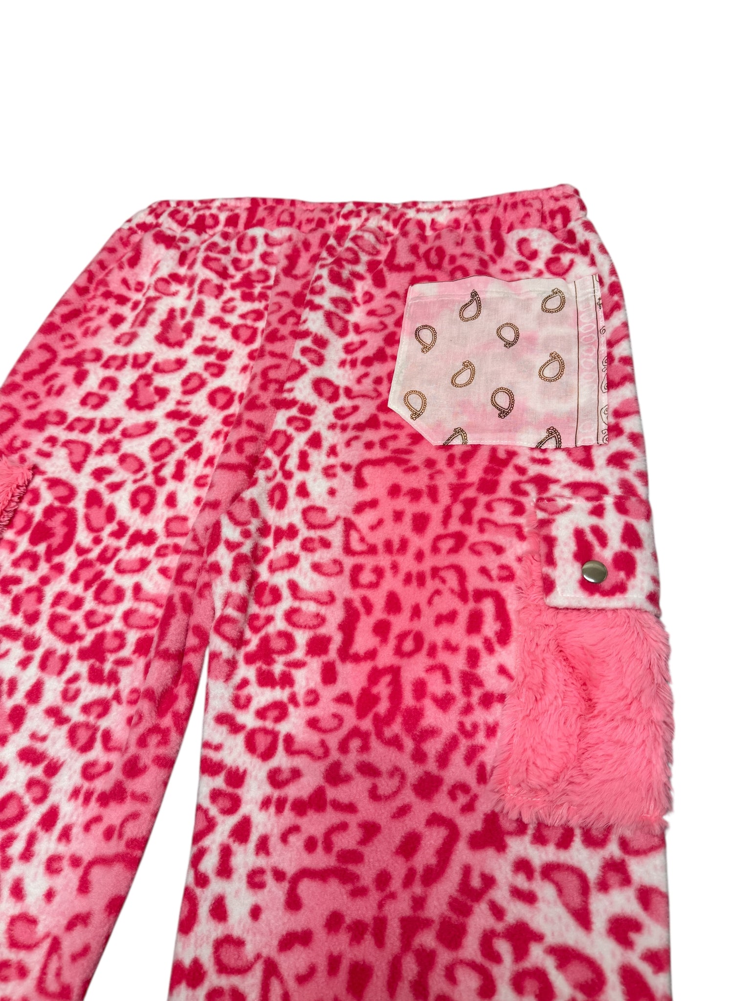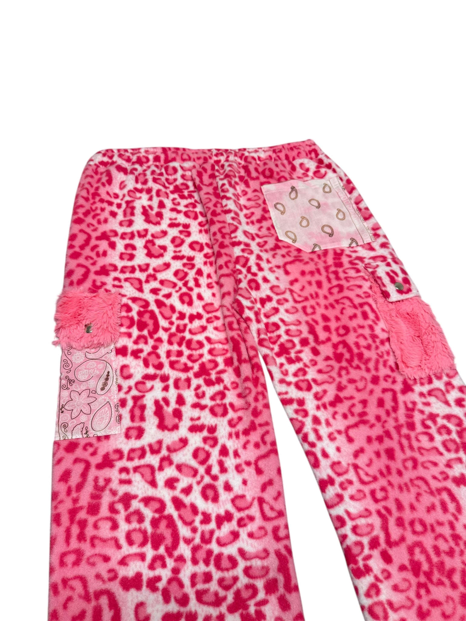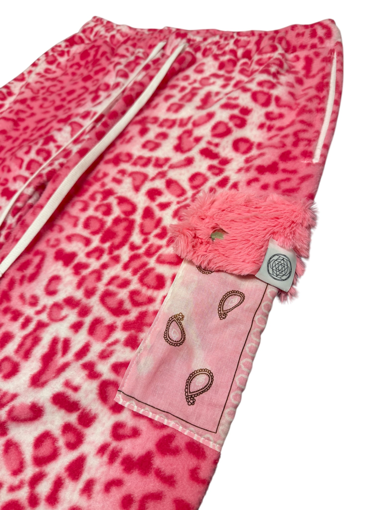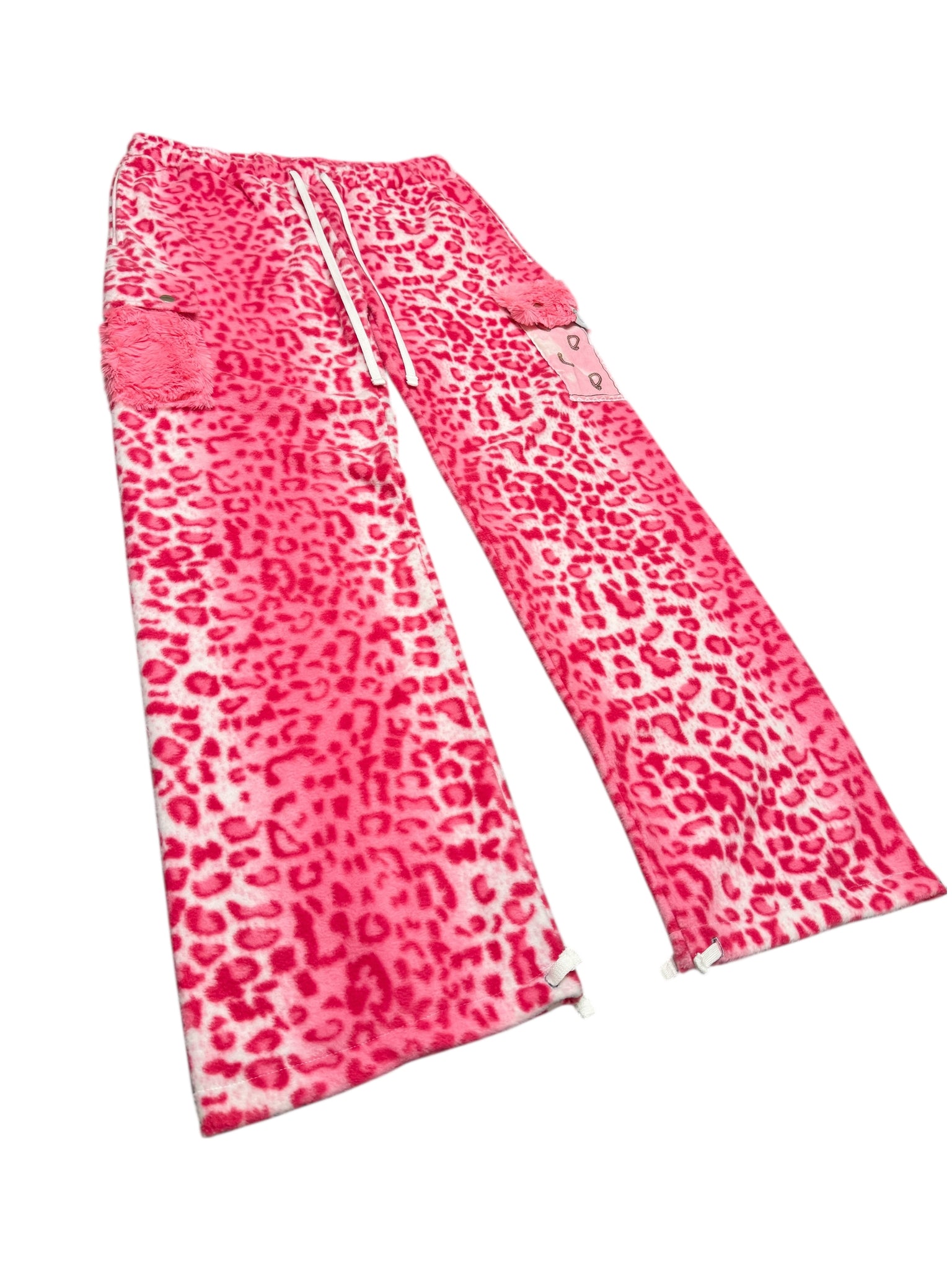 The new “Baby Bite” cargo pants hit hard with a smooth style and extra comfort. Pink leopard, petal pink, and plush fur create a dream combo. Deep hand pockets, a back pocket, and snap cargo pockets keep your stuff locked in. Adjustable ankle ties let you switch the vibe, loose and flowy, or tied up tight. Available in mens / unisex sizes S-3XL.