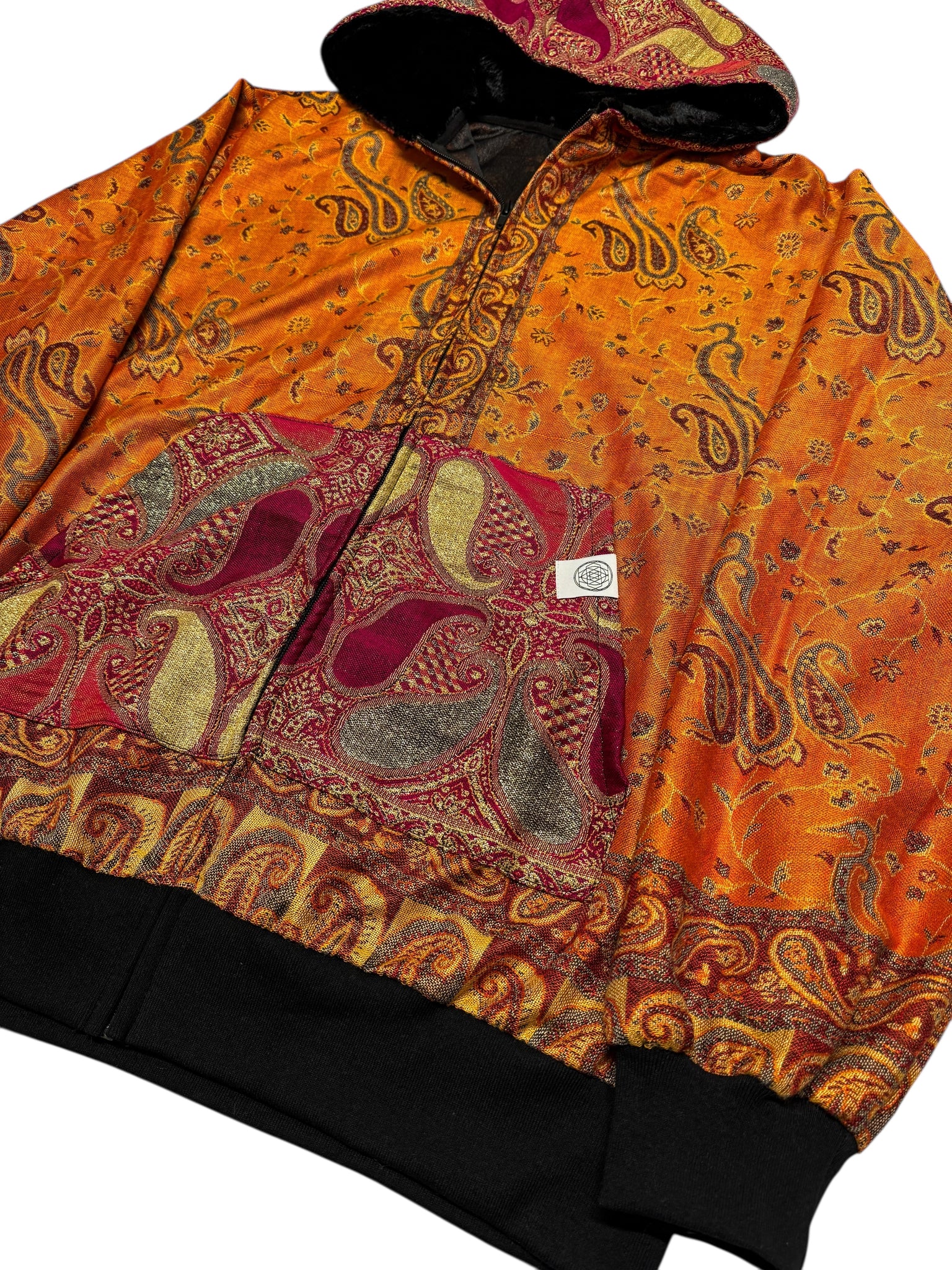 All of our pashmina hoodie are one of a kind or limited edition. Made with our PashTek backing for added strength. Each hoodie has a zip up front and plush fur lined hood.