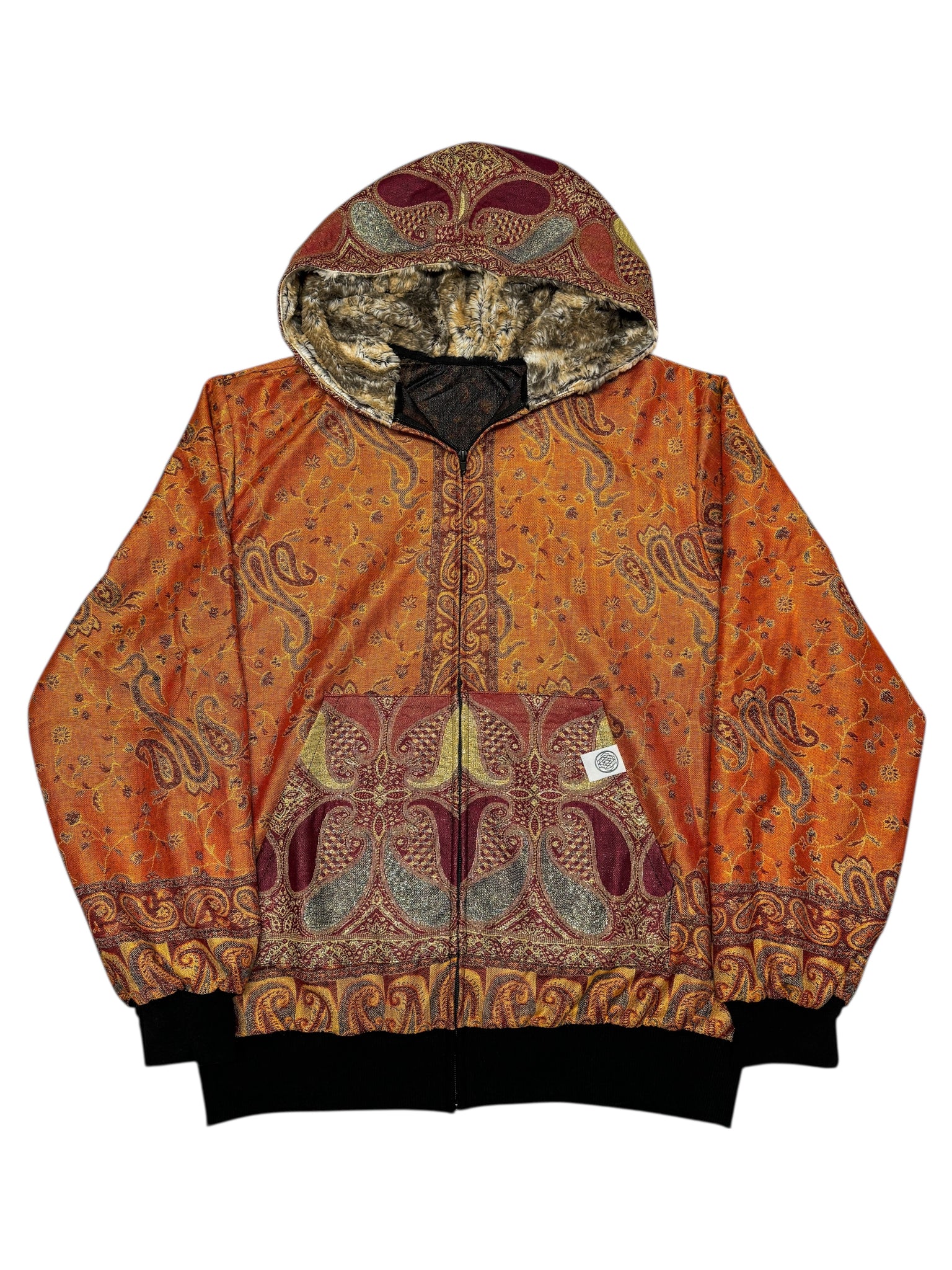 All of our pashmina hoodie are one of a kind or limited edition. Made with our PashTek backing for added strength. Each hoodie has a zip up front and plush fur lined hood.