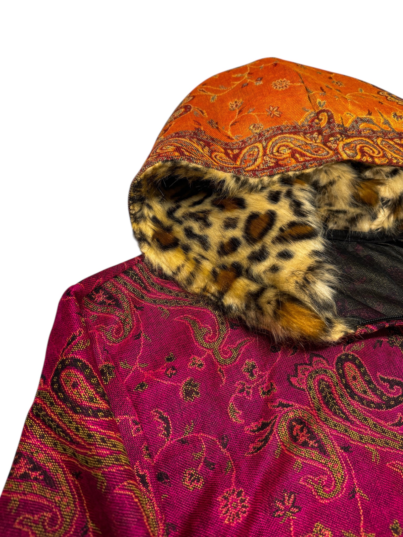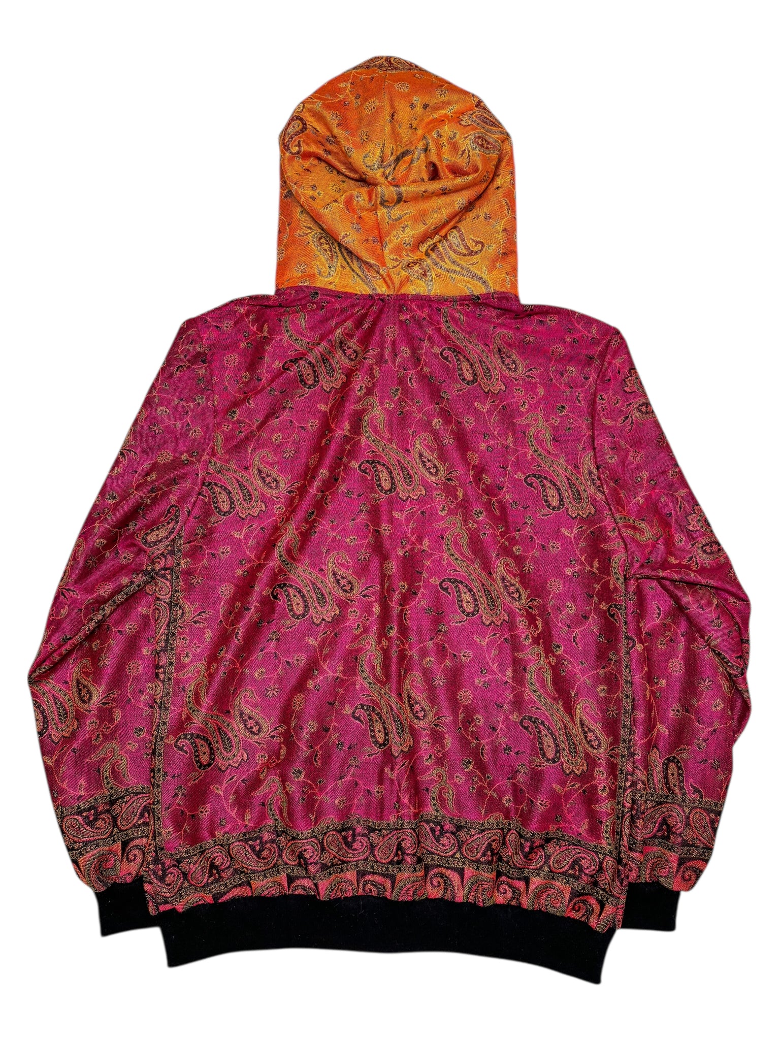 All of our pashmina hoodie are one of a kind or limited edition. Made with our PashTek backing for added strength. Each hoodie has a zip up front and plush fur lined hood.